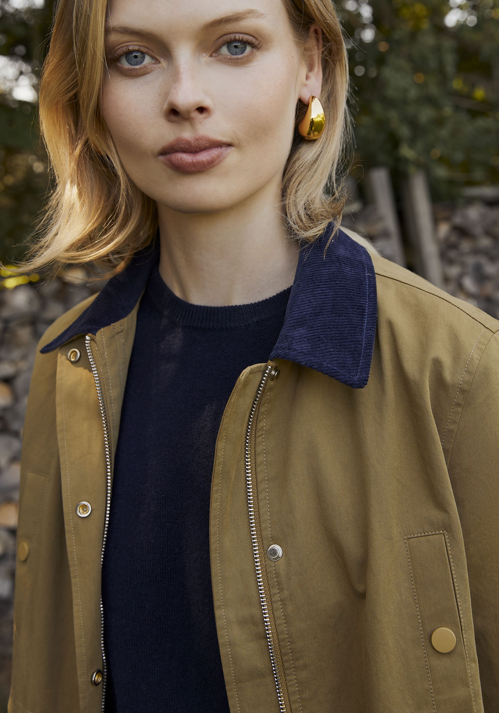 The Diana Barn Jacket combines classic style with modern details. The adjustable cinch at the waist allows for a customized fit, making this versatile staple perfect for any outfit. With its navy corduroy accents, this jacket is a must-have.